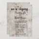 Um fundo de madeira de pássaro enfeita este anúncio de elopeamento e o convite de casamento para mantê-lo simples.