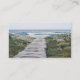 Areia, cartões de visitas temáticos da praia. Cor castanho-cinza escura com duas imagens de buraco de areia e dólar e texto de pêssego pálido que é fácil de personalizar para suas necessidades. Anuncie um negócio ou uma casa de praia para alugar, com um modelo fotográfico atrás. Mantenha a imagem de um passeio de barco através das dunas até o mar, ou faça o upload de uma foto sua. Perfeito para anunciar uma propriedade alugada.