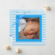 Este anúncio de nascimento é um menino temido com listras brancas e azuis. Basta adicionar a foto do seu bebê na área personalizada. Depois, no verso, mude todo o texto para a informação do seu bebê: nome, nomes dos pais, peso à nascença, comprimento.