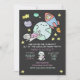 A festa do Purr-fect começa com este convite temático de gatos Space. design do quadro de fontes e fundos.
