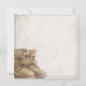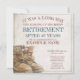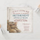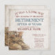 Anúncio de aposentadoria com botas velhas e desgastadas com cadarço em estilo vintage. Texto relacionado ao gênero, o ano, o texto honorário, a data, a hora, o local de celebração e RSVP podem ser personalizados.