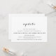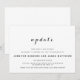 Para casais que desejam um design de casamento simples, mas elegante. Elke Clarke © O design apresenta os nomes da noiva e do noivo em uma fonte de letra elegante com a palavra "atualização". Mostrado em preto e branco, mas pode ser personalizado para as cores do seu casamento para o texto e o fundo. Adicione outros gráficos, fotos ou monogramas para personalizar este modelo.