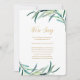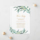 Este simples aviso de adiamento de casamento em verde sálvia e branco com ilustrações botânicas é uma maneira simples e doce de informar aos convidados que a cerimônia foi adiada devido a eventos imprevistos. Este design moderno apresenta uma bela caligrafia "desculpe-nos" em ouro falso e lindas folhas em aquarela.