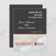 Cartão elegante e moderno para salvar a data. Perfeito para um casamento de destino baseado em Barcelona, Espanha. Apresenta um mapa de Barcelona com o Mar Mediterrâneo. O nome da cidade tem um coração dentro da letra "O". Design sofisticado perfeito para um casal global e moderno. Adicione sua própria mensagem ou encomende como mostrado.