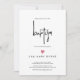Um coração cor-de-rosa com caligrafia moderna é a design para este convite batismo de menina. Perfeito para os pais modernos que querem um estilo minimalista para a cerimônia de batismo das filhas.