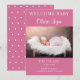 Cartão de Anúncio de Bebê de Boas-vindas projetado com a foto de seu bebê, data de nascimento, peso e nomes de pais em uma frente rosa suave; com um design de ponto polka no verso. Este cartão com dois lados se tornará seguramente um guardião precioso por parte da família e dos amigos. Para personalizar com a imagem do seu filho, basta usar o nosso modelo para substituir a imagem e, em seguida, clique em "AJUSTADO" para posicionar. Uma vez inserida a imagem, use o nosso modelo passo a passo para substituir o texto pelo seu. As cores de fundo podem ser alteradas com nossa Ferramenta de seleção de cores. É rápido e fácil.