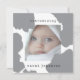 Bem-vindos ao mundo com este cartão de anúncio moderno e minimalista para bebês, com um belo quadro de fotos quadradas, salpicos de água para cinzas e texto clássico no estilo de máquina de escrever. É a combinação perfeita de simplicidade e encanto — ideal para compartilhar a primeira foto e o nome do seu bebê com amigos e familiares. Quer você prefira uma breve introdução ou uma mensagem sincera no verso, este anúncio é uma bela maneira de marcar este marco alegre.
