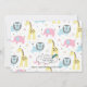 Este design de bebê precioso é uma maneira maravilhosa de celebrar sua nova chegada. Esta design tem um fundo branco com girafas amarelas, leões azuis e elefantes cor-de-rosa. No centro há uma caixa de texto branca para personalizar com o nome, peso, altura e data de nascimento do seu bebê. Na caixa de texto está um leão azul doce. Isto é perfeito para o seu berçário para o seu filho.