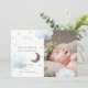 O anúncio de nascimento deste bebê bonitinho apresenta um fundo branco com estrelas de brilho dourado, a lua crescente e nuvens azuis claras e fofinhas. O verso apresenta padrões de pontos aleatórios dourados falsos em fundo branco. Personalize para suas necessidades. Você pode encontrar mais produtos correspondentes na minha loja.