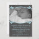 Anúncio de bebê fotográfico elegante e elegante e elegante, em azul claro, com um simples design de folha e vinha que enquadra a área fotográfica. Personalize este maravilhoso anúncio com uma foto do seu pacote de alegria e todos os detalhes interessantes! Clique em "Personalizar" para encontrar mais opções de personalização.