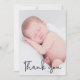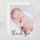 Personalize facilmente este modelo com a foto do bebê na frente e uma mensagem especial além das informações do bebê no verso. Este design usa uma fonte elegante manuscrita para um toque de sofisticação. Expresse sua emoção ao anunciar o nascimento do seu recém-nascido e envie sua gratidão ao mesmo tempo.