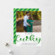 cartão de anúncio de nascimento fofo e simples durante a temporada de Dia de São Patrício com uma foto personalizada que somos tão sortudos, a parte traseira apresenta um fundo de faixas verdes