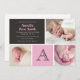 Envie aos seus amigos e familiares a maravilhosa notícia da chegada do seu pequeno com estes cartões de anúncio de bebê personalizáveis. Um design maravilhoso com três fotos e uma inicial do nome do seu bebê. Bebê menino também disponível neste estilo.