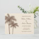 Anuncie o seu casamento na praia com estilo com este anúncio de casamento de save the date da palmeira marrom trendy! Personalize facilmente com as suas informações. Selecione o botão personalizar para alterar o estilo, cor e tamanho da fonte.