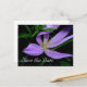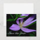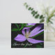 Linda flor roxa para o seu cartão postal Salve a Data. Perfeito para eventos especiais, casamentos, chás de bebê, noivados, arrecadações de fundos, eventos de arte, aniversário, formatura ou qualquer ocasião especial. Personalize com sua mensagem. Combine com outros produtos da Moving Light Gallery.
