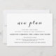 Para casais que desejam um design de casamento simples, porém elegante. Elke Clarke © O design apresenta os nomes da noiva e do noivo em uma fonte de letra elegante com as palavras "novo plano". Mostrado em preto e branco, mas pode ser personalizado para as cores do seu casamento para o texto e o fundo. Adicione outros gráficos, fotos ou monogramas para personalizar este modelo.