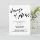 Esta simples distinção de suíte se deve à fonte moderna, escrita à mão, usada para frases de sotaque. Nesta peça, a fonte de script escrita à mão foi usada para criar um gráfico que lê "mudança de planos", grande e negrito. Use os campos modelo para adicionar seus detalhes pessoais e tornar este design único e moderno seu próprio. O plano de fundo pode ser alterado para qualquer cor que você preferir. Por favor, responda a quaisquer solicitações especiais ou personalize a assistência. 100 //