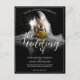 Anúncio de casamento com uma foto de uma noiva sonhadora sentada com um buquê amarelo de flores na penumbra - estilo clássico. Os nomes, texto, localização e data podem ser personalizados no modelo.
