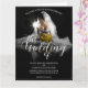 Anúncio de casamento com uma foto de uma noiva sonhadora sentada com um buquê amarelo de flores na penumbra - estilo clássico. Os nomes, texto, localização e data podem ser personalizados no modelo.