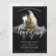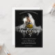 Anúncio de casamento com uma foto de uma noiva sonhadora sentada com um buquê amarelo de flores na penumbra - estilo clássico. Os nomes, texto, localização e data podem ser personalizados no modelo.