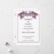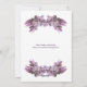 Anúncio de casamento com buquê floral de adiamento em Save The Date numa fonte de letra cursiva elegante em lilás escuro juntamente com a sua mensagem. Tudo rodeado por uma fina borda lilás escura.