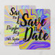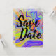 Anuncie seu casamento com estilo com este cartão Save the Date colorido.