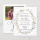 convite para casamento botânico de flores silvestres elegantes, no verso, foto e rsvp com código qr ou local de casamento.