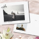 Cartão postal de anúncio de casamento. 'Acabamos de Casar' está escrito na areia - ótimo para aqueles que tiveram casamentos de destino, fugas românticas, cerimônias na praia ou lua de mel na praia! Adicione sua própria foto de casamento e personalize com os detalhes do seu casamento para um cartão personalizado, fácil de customizar e fofo para familiares e amigos!