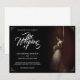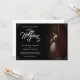 Anúncio de casamento com a imagem de uma noiva sonhadora inclinada contra uma parede com um buquê de flores brancas na penumbra - estilo clássico. Os nomes, texto, localização e data podem ser personalizados no modelo.