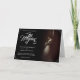 Anúncio de casamento com a imagem de uma noiva sonhadora inclinada contra uma parede com um buquê de flores brancas na penumbra - estilo clássico. Os nomes, texto, localização e data podem ser personalizados no modelo.
