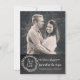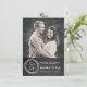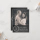 Anúncio divertido e rústico de casamento com visual de lousa para salvar a data, com foto personalizada no topo do cartão e uma aparência de lousa preta cinza carvão na parte inferior. Gráficos de uma grinalda com o texto 'Salvar a data' decoram a parte inferior. O texto branco personalizado está pronto para ser personalizado com sua foto e informações. Uma maneira encantadora de anunciar seu próximo casamento.