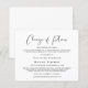 Opção de orçamento para uma mudança de planos anúncio de casamento se as circunstâncias exigirem que você reduza seu casamento, adie seu casamento, mude de local, mude a data, etc. Esse anúncio moderno e mínimo, mas elegante, preto e branco apresenta "Mudança de Planos" escrito em um roteiro de na moda. Você pode personalizar facilmente sua mensagem de anúncio de mudança de planos de casamento em mais detalhes.
