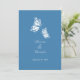 design de borboleta branca e azul-esparo moderno e elegante. Totalmente personalizável. Disponível como convites, guardar a data, anúncio, rsvp, favores para casamentos, festas, chá de panela, noivado e quaisquer outras ocasiões especiais. Clique no botão "Personalizar" para alterar as cores ou fontes do texto. Design original de Ruxique.
