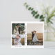 Anuncie seu casamento aos seus amigos e família por este cartão moderno. O design tem três colagens de fotos na frente com texto branco de caligrafia "Recem casados" e os nomes das recém-casadas. No verso, você tem uma foto vertical no lado e o casamento detalha o parágrafo do texto no outro lado. Personalize o cartão com suas fotos, detalhes do casamento, data do casamento e nomes.