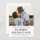 Um anúncio de casamento em tempo hábil que mostrava que simplesmente não podíamos esperar o título. Uma maneira excelente de deixar os entes queridos saberem que você amarrou o nó. O backside permite uma mensagem personalizada para amigos e familiares ou pode ser removido se desejar. Clique em editar para personalizar.