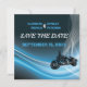 anúncio de casamento de motociclista em estrada azul, apresentando uma motocicleta em um fundo gradiente abstrato azul, branco e preto e uma malha branca. Alguns elementos cortesia de Clipartandfonts.com.