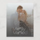 Simples casal de casamento moderno e minimalista foto de Natal BUDGET barato cartão de casamento de feriado com faux prata merrily casada camada de tipografia. +++++++++++++++++++++++++++ LEIA ISTO ANTES DE COMPRAR! Este é um cartão de barato de orçamento impresso em uma folha de papel (cada folha tem um cartão). +++ Para obter a melhor qualidade de preço, nosso conselho é escolher o tipo de papel Semi-Gloss (é espesso o suficiente para ser usado para papelaria) +++ Se você precisar de envelopes, escolha a OPÇÃO ENVELOPE. ++ Verifique duas vezes todas as informações e a ortografia do seu texto porque você receberá exatamente o que você vê - ninguém mais verificará nada antes de imprimir. +++ Esta placa foi projetada para o tamanho de 4,5" x 5,6". Caso você escolha outro tamanho do cartão e o texto saia da página, tudo precisa ser corrigido antes de adicionar o produto ao carrinho. Peça ajuda ao Serviço de Design ao Vivo.