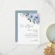 moderno roteiro azul empoeirado floral e branco, nós fugimos do design de anúncio de casamento com texto e imagens editáveis.