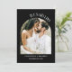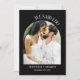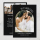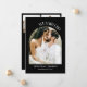 Modelo de cartão de anúncio de casamento com caligrafia preta e branca com tipografia escrita à mão em arco com arabescos que diz "nós dissemos sim" com seus nomes. Adicione duas imagens a este produto para torná-lo seu. A foto será colocada no verso do cartão ao lado da sua fotografia de casamento e da sua mensagem desejada.