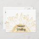 Anuncie seus próximos núpcias de junho, julho ou agosto com o bonito Casamento de Verão com Gráfico de Girassol Salve o Anúncio de Data. Este elegante cartão de casamento botânico de verão apresenta uma fotografia floral melhorada digitalmente de um girassol amarelo com fundo branco.