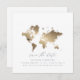 Dourado efeito d'água do mapa mundial do mapa salva o cartão de data. Com um belo mapa metálico do mundo do ouro, coração móvel para posicionar sobre o seu local de escolha e espaço para localização de nomes e detalhes adicionais. Ideal para casamentos de locais estrangeiros ou só porque você ama seu estado