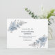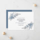 Um cartão de anúncio de casamento elegante, azul empoeirado, com folhas de samambaia e margaridas.