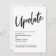 A distinção deste conjunto deve-se à fonte de script manuscrito ousado e casual usada para frases de sotaque. Se você está na posição de precisar informar seus convidados de casamento que você teve que cancelar seus planos de casamento, aqui está uma opção ousada que não deve ser ignorada. Nesta peça, a fonte de script escrita à mão foi usada para criar um gráfico simples que retrata a palavra "Atualizar". Use os campos de modelo para adicionar seus detalhes pessoais e tornar este design moderno seu próprio. O fundo branco pode ser alterado para qualquer cor que você preferir. Por favor, responda a quaisquer solicitações especiais ou personalize a assistência. 105 //