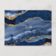 Cartão postal de casamento em geodo de ágata dourada naval pode ser usado para lembretes de RSVP, salvar a data ou qualquer evento. Coordena com o convite de casamento de ágata dourada naval.