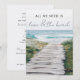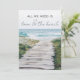 Convite de casamento e recepção para casais que fugiram para se casar em uma praia na Nova Inglaterra. Frente lê - Tudo o que precisamos é amor e a praia. Adicione os detalhes do seu casamento e recepção no verso e convide familiares e amigos para celebrar com você.
