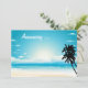 Oceano azul lacrimogêneo e céu azul limpo. Ondas oceânicas caindo para a costa, gaivotas flyng no céu e uma silhueta de palmeiras - Convites de Casamento Totalmente Personalizáveis e extras correspondentes.