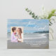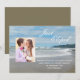 Este anúncio de casamento fuga romântica é perfeito para qualquer pessoa que teve uma fuga para o oceano ou praia. O design apresenta uma cena de praia com uma foto do casal feliz. As palavras "Fugimos" aparecem no céu e os detalhes da fuga são escritos na areia. Uma ótima maneira de deixar todos saberem que vocês fugiram. Copyright henishouseofpaper