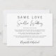 Anúncio de casamento menor moderno e elegante. "Mesmo Amor, Casamento Menor" está escrito em uma mistura de tipografia simples e uma escrita contemporânea. Você pode personalizar facilmente sua mensagem, adicionar seus nomes em uma escrita semelhante a uma assinatura e adicionar o site do seu casamento no verso para que amigos e familiares encontrem mais informações, como links de transmissão ao vivo da cerimônia.