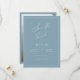 Um cartão minimal save the date com caligrafia simples e moderna em um tom azul poeirado para o jeito perfeito de anunciar seu casamento.