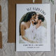Modelo de cartão de anúncio de casamento com caligrafia minimalista elegante e texto sobreposto tipográfico desenhado à mão com arabescos que diz "nós dissemos sim" com seus nomes. Adicione duas imagens a este produto para personalizá-lo. A foto será colocada no verso do cartão ao lado da sua fotografia de casamento e da mensagem desejada.